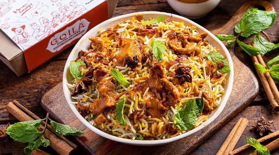 Chef Saransh Goila is the youngest celebrated chef in India, listed in Forbes Celebrity 100 in 2019, the only Indian chef to appear as a guest judge on MasterChef Australia, and the founder of Goila Butter Chicken, now across 100 outlets in 40 cities. His signature biryani takes his famous smoky Makhani gravy and uses it as the base for a dum-cooked biryani, topped with crispy fried onions and crunchy cashews.