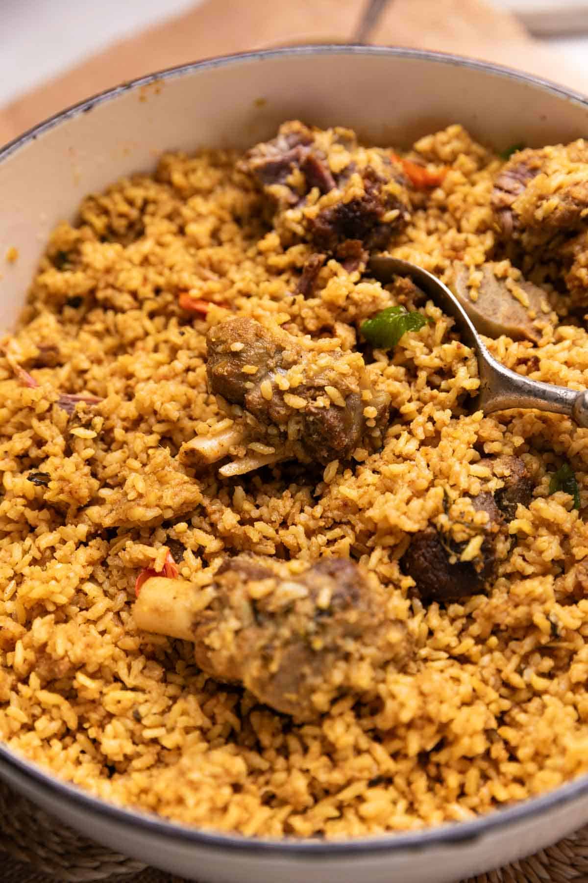 For the mutton: 800g bone-in mutton, 1 cup yogurt, 2 tbsp ginger-garlic paste, 1 tsp red chilli powder, 1 tsp coriander powder, half tsp turmeric, 1 tsp garam masala, 2 tbsp ghee, salt to taste.