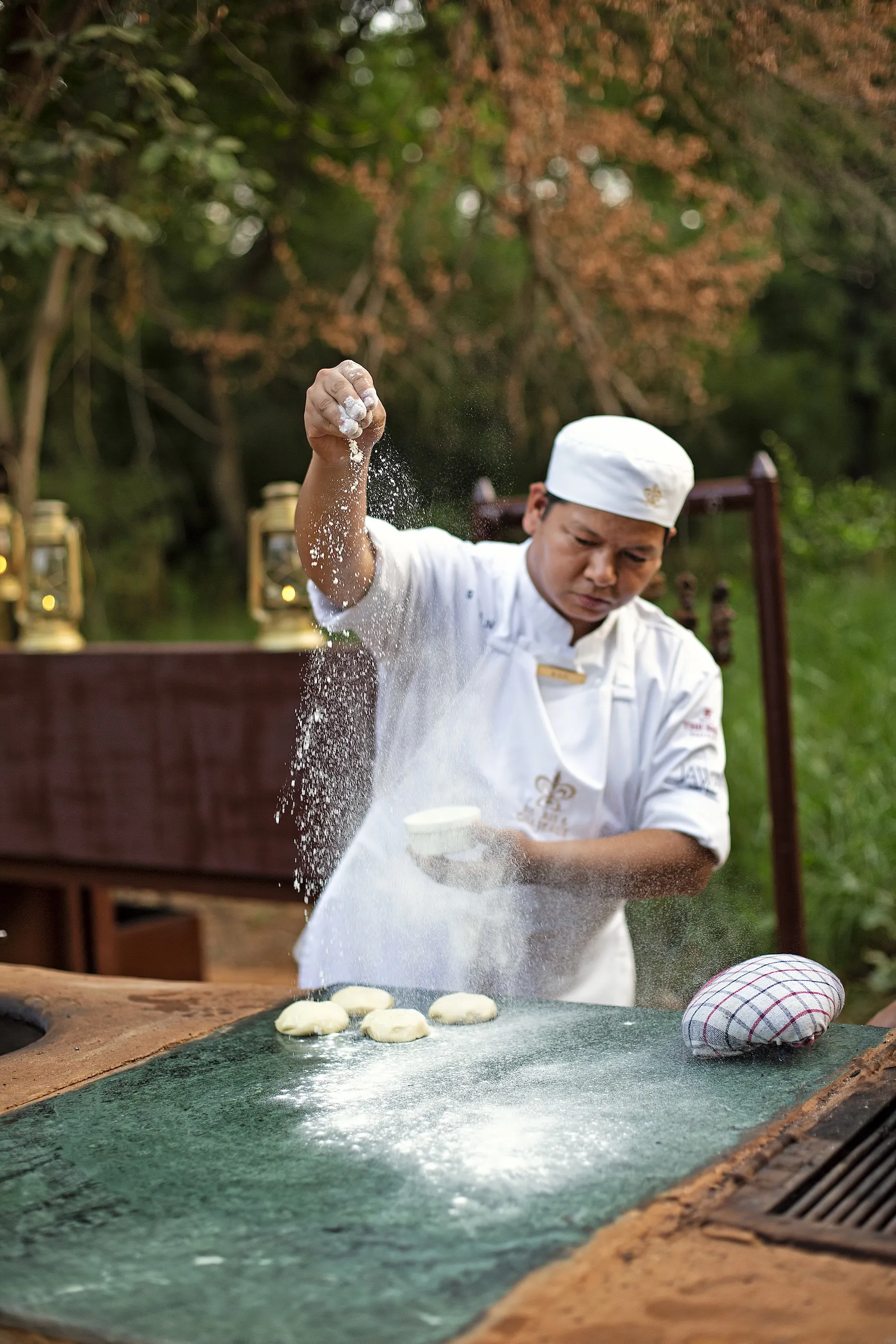For over 25 years, Sher Bagh has operated a farm-to-table kitchen, growing as much as possible organically in its own herb and vegetable garden, supplemented by the Sher Bagh Farm and Dairy. The menus combine Anglo-Indian and European influences, cooked over outdoor clay ovens, served in the dining tent by candlelight or under the stars around the campfire. The traditional thaal dinners on open ground, surrounded by the sounds of the jungle and lit by oil lamps, are among the most atmospheric meals available anywhere in the country.