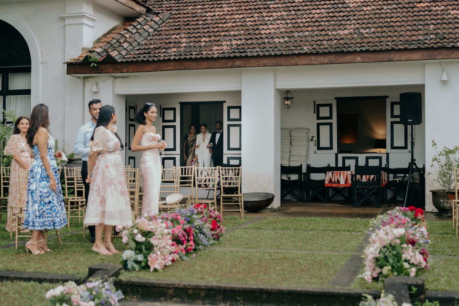 The property, now managed by the Lunuganga Trust and operated through Teardrop Hotels, can accommodate up to 100 guests including vendors, making it intimate by design. Every guest staying on the estate receives a guided garden walk as part of their experience, meaning the wedding weekend becomes an immersion in Bawa’s world rather than simply a stay at a hotel. Guided by a Trust curator through the Red Terrace, the Water Garden, the Sandela Pavilion, and the Cinnamon Hill House, guests arrive at the ceremony already understanding what they are standing inside.