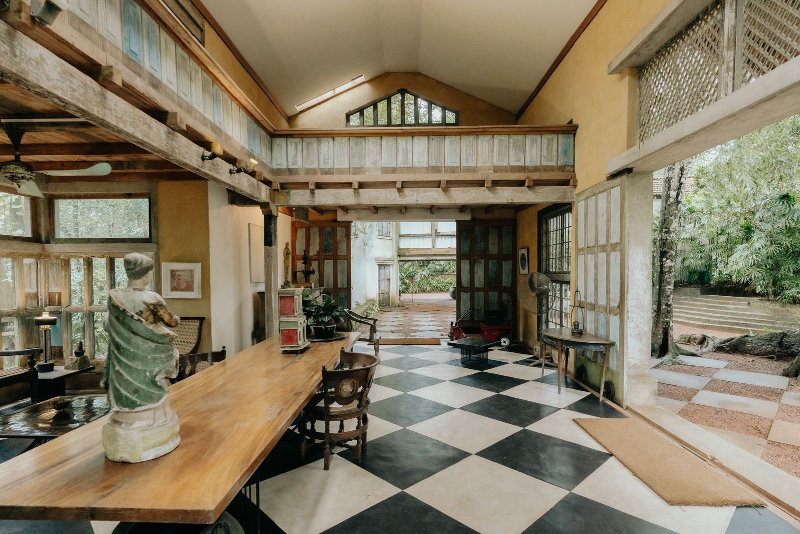 The ten rooms and suites that scatter the grounds are each entirely distinct, many occupying buildings that Bawa designed for specific purposes. The Glass House bedroom, set in an open, airy structure among the branches near the entrance court. The Geoffrey Bawa Suite, his original bedroom, preserved exactly as he left it. The room that once housed his art collection, private and quietly located near a courtyard, perfect, the Trust notes with understatement, for honeymooners.